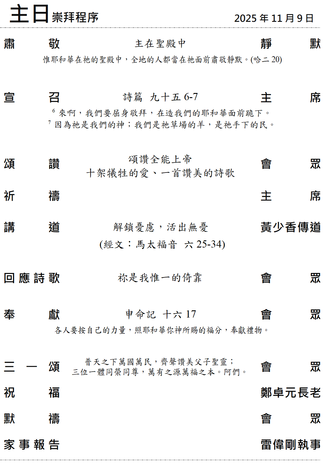 經文 : 馬太褔音 六25-34 (和合本修訂版)