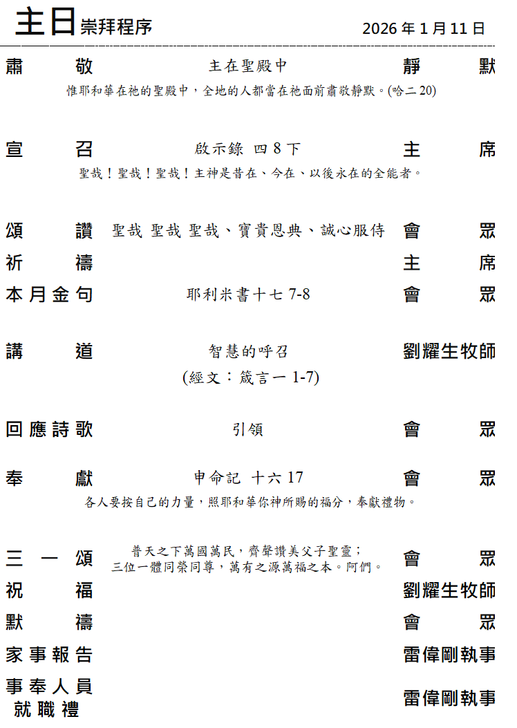崇拜場刋 ~ 摘要版