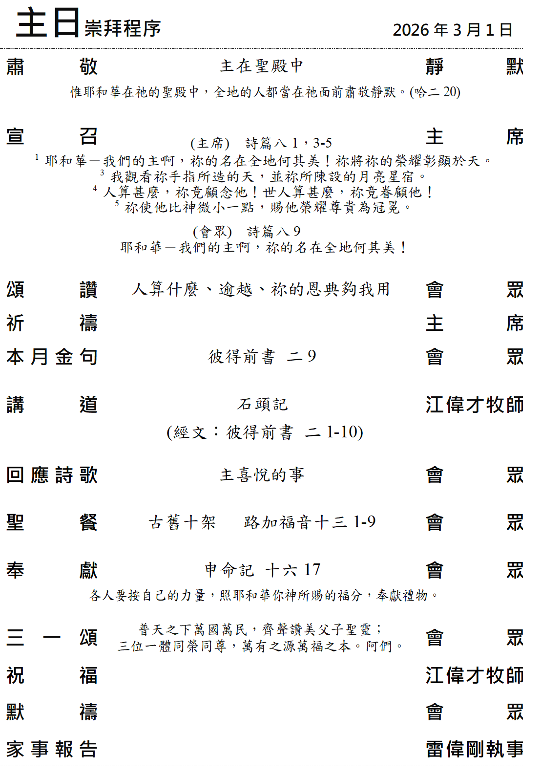 經文 : 彼得前書 二1-10 (和合本修訂版)