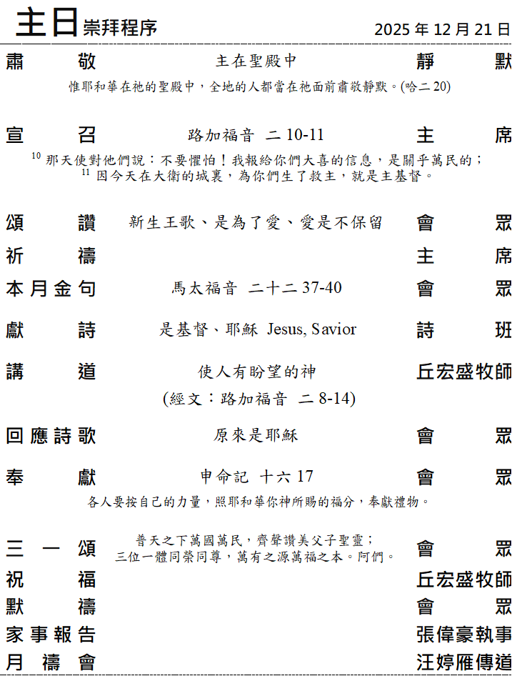 14 在至高之處榮耀歸與神!在地上平安歸與他所喜悅的人 !
