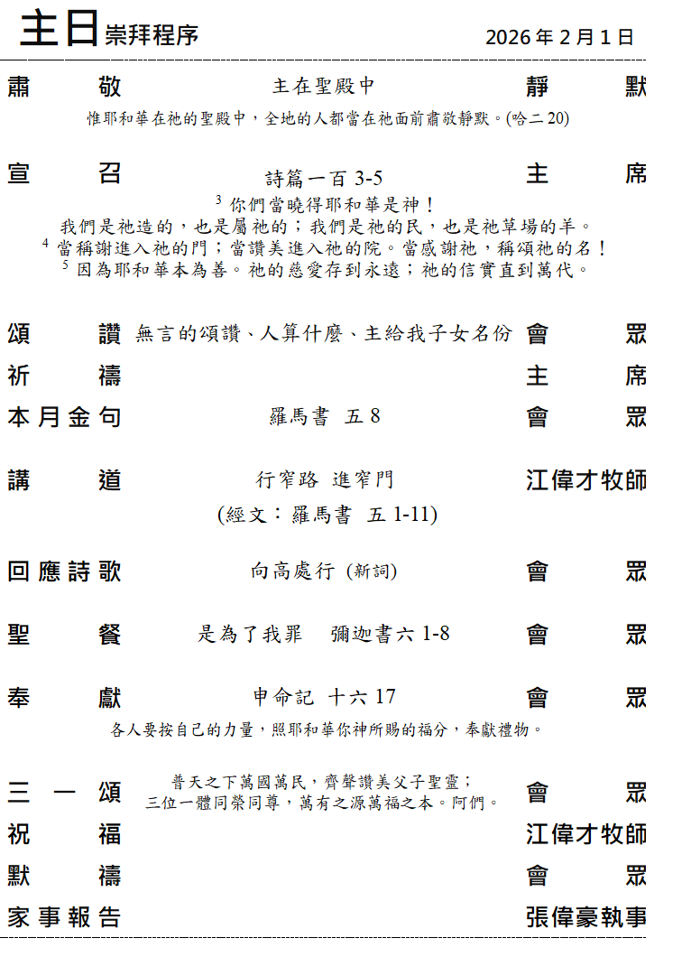 崇拜場刋 ~ 摘要版